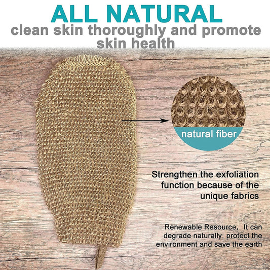 Enliwish Eco Friendly Natural Hemp Exfoliating Bath Mitt Glove Jute Bath Sponge Scrubbing Hemp Glove (Pair)